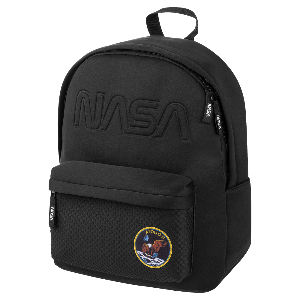 • Černý batoh z neoprenového materiálu pro volný čas s decentním logem NASA a tématickou nášivkou.