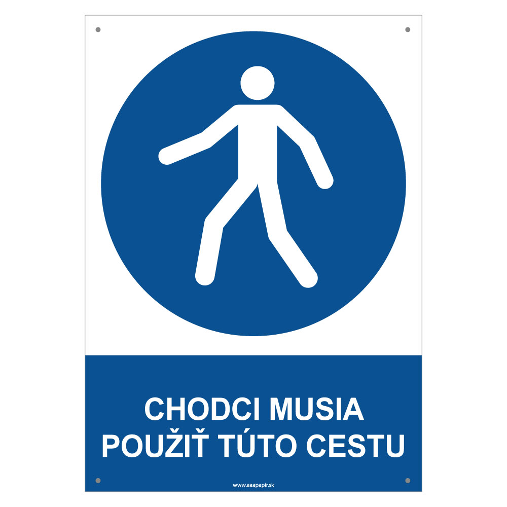 Chodci musia použiť túto cestu - bezpečnostná tabuľka s dierkami, plast 2 mm - A4