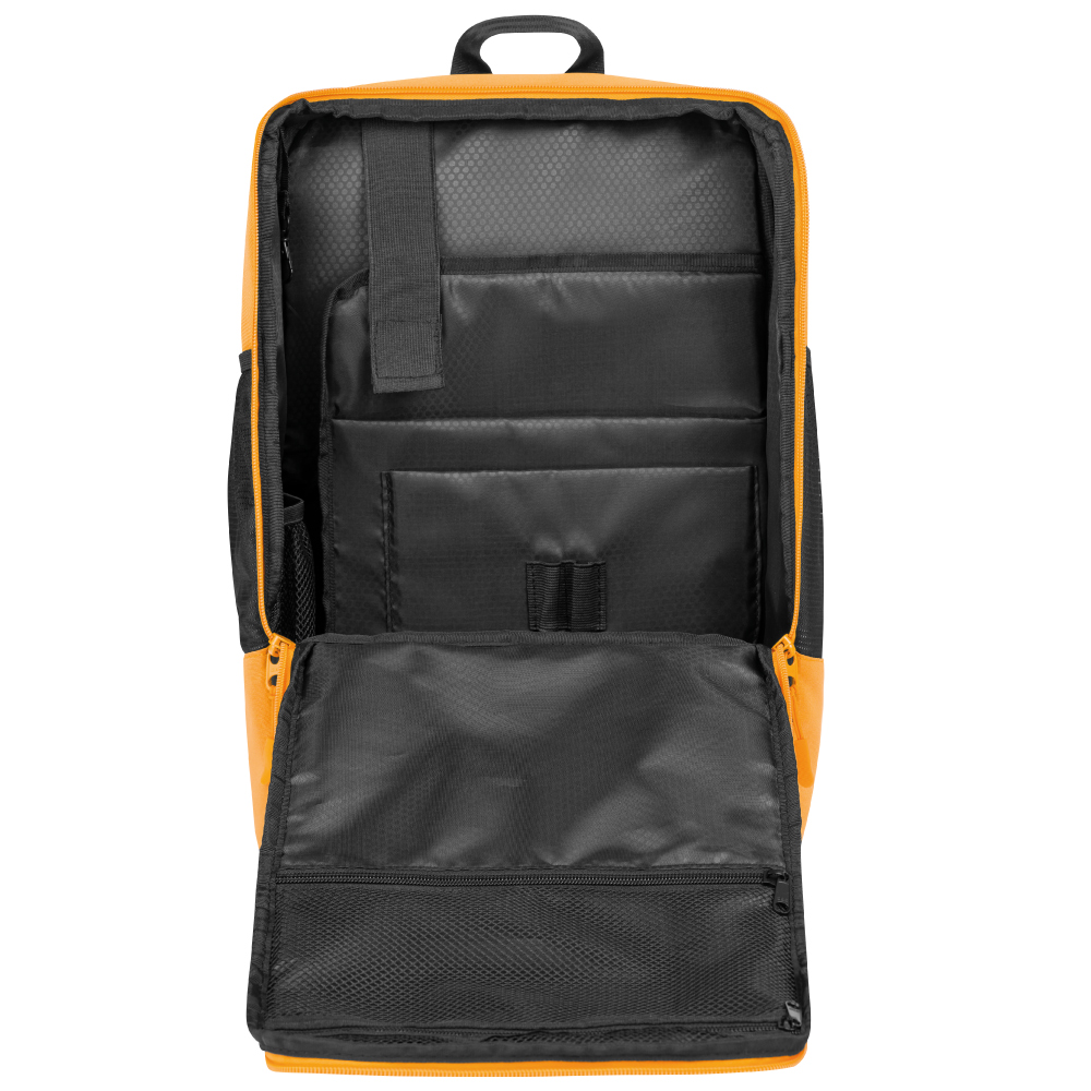 • Ideální na cesty jako příruční zavazadlo do letadla. Další výhodou je zádový pruh, který slouží k fixaci batohu na madlech kufru.