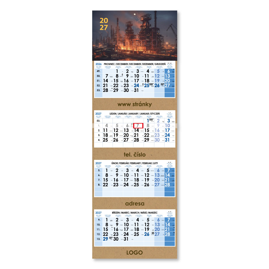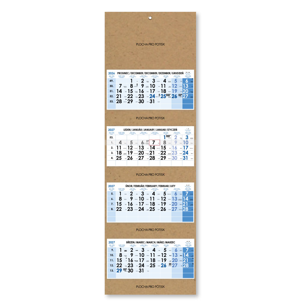 Formát kalendária: 295 x 135 mm