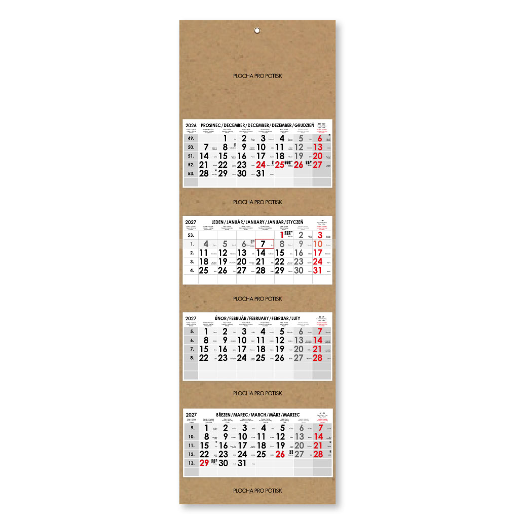 Formát kalendária: 295 x 135 mm