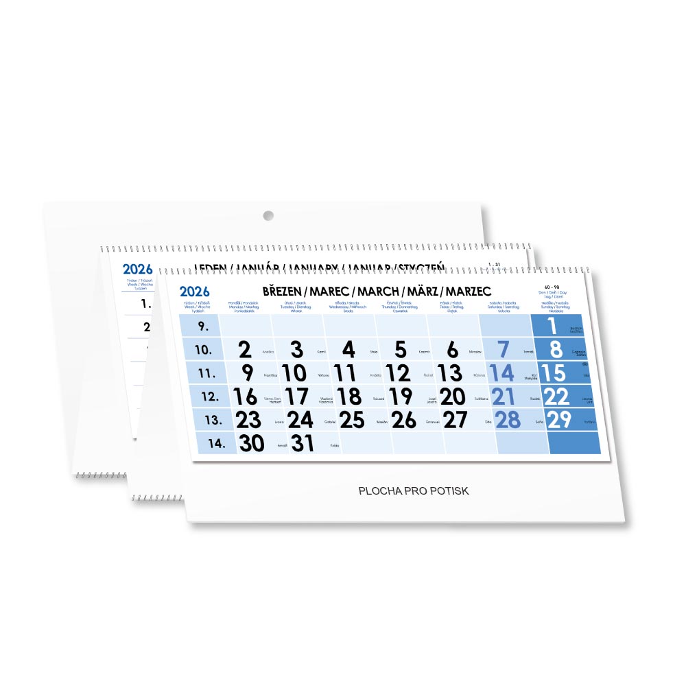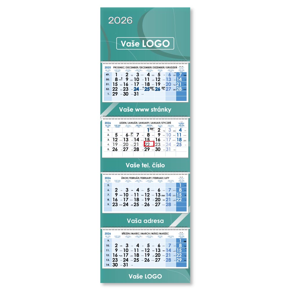 Čtyřměsíční kalendář Kvatro skládaný český se spirálou 2026 - modrý