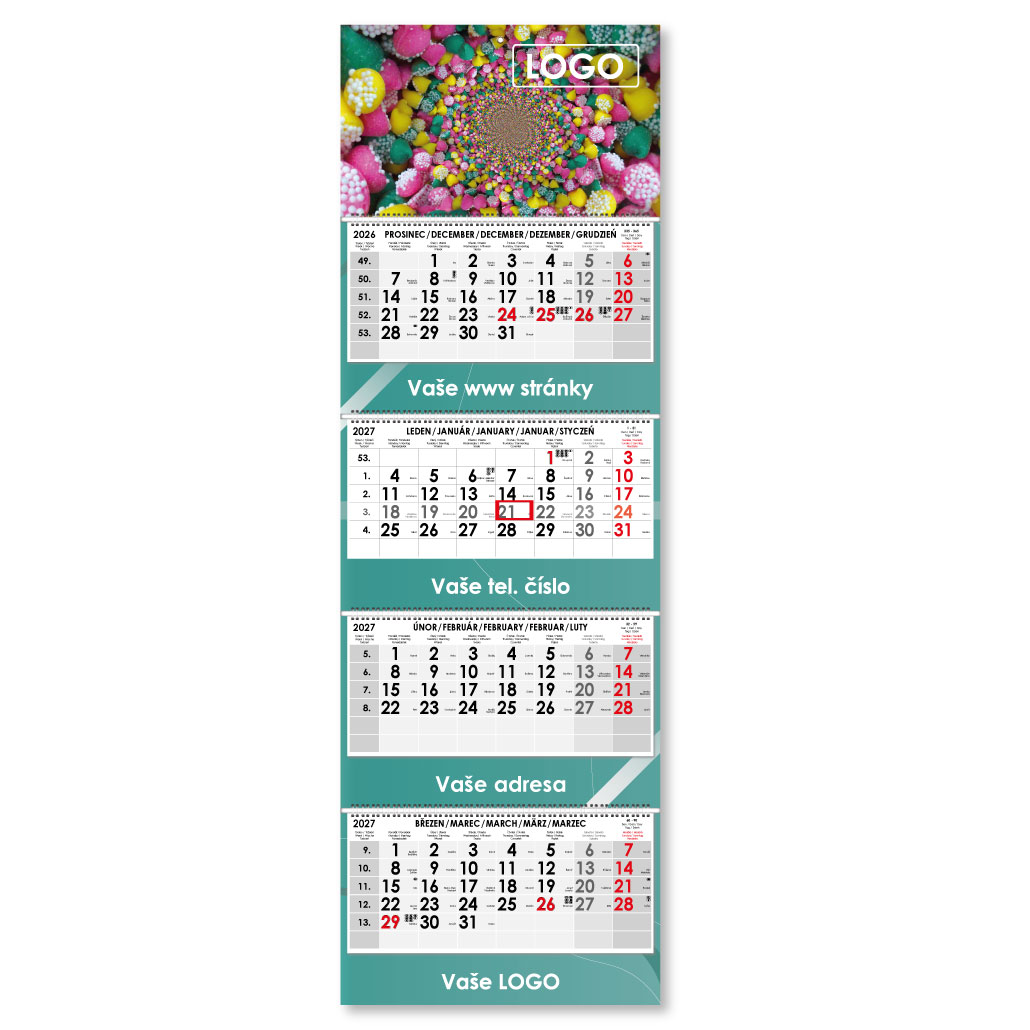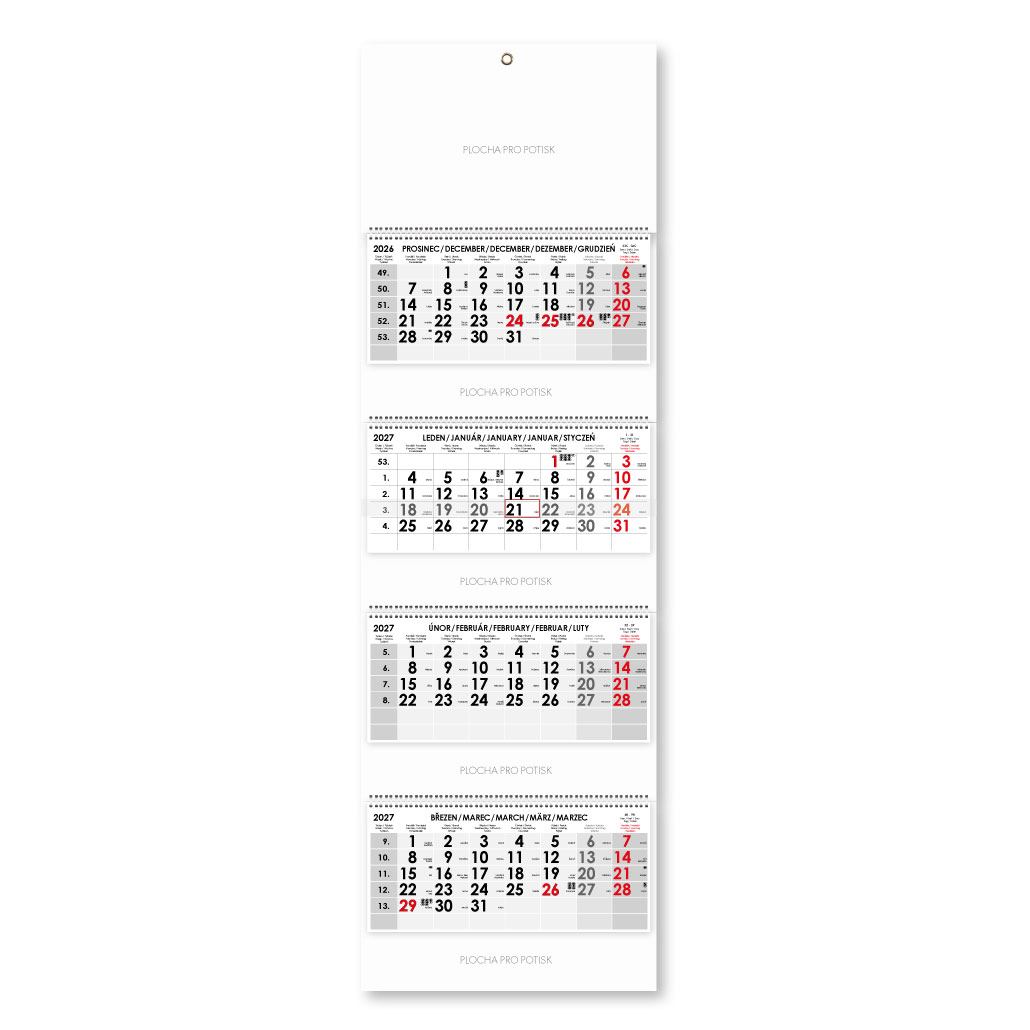 Čtyřměsíční kalendář Kvatro skládaný český se spirálou 2027 - šedý