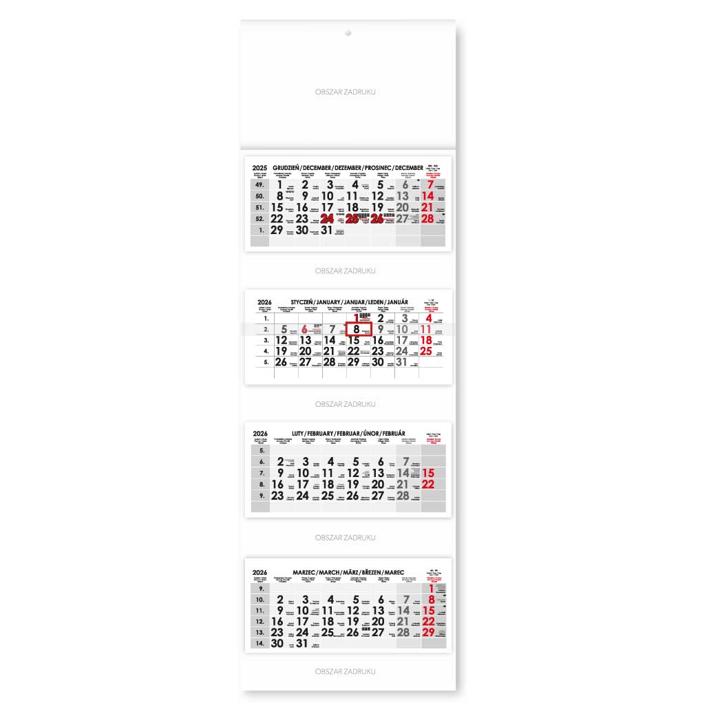 Čtyřměsíční kalendář Kvatro skládaný polský 2026 - šedý