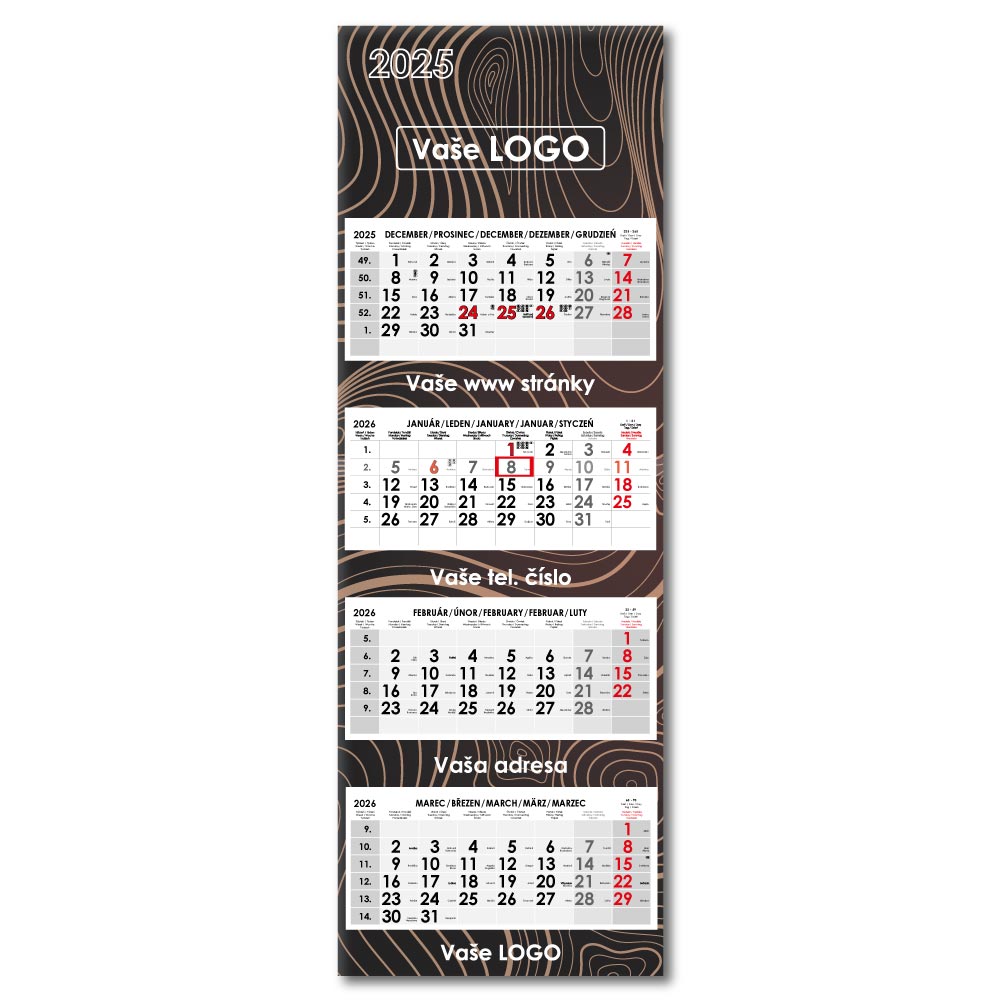 Formát kalendária: 295 x 135 mm