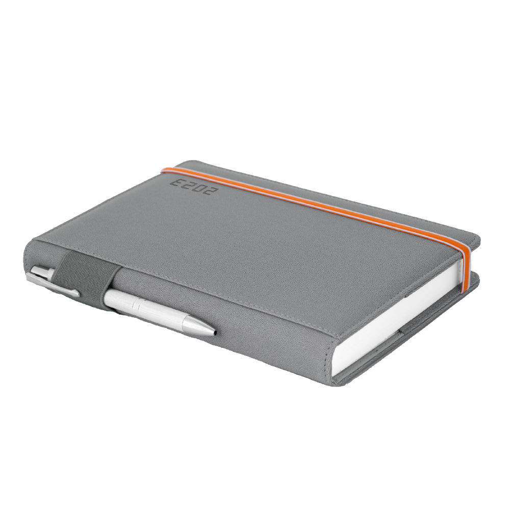 Diář AMOS denní A5 2023 český - šedá/oranžová gumička