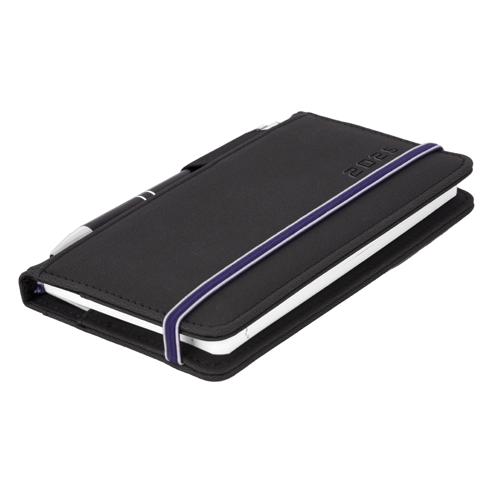 Diář AMOS týdenní kapesní 2025 český - černá/modrá gumička