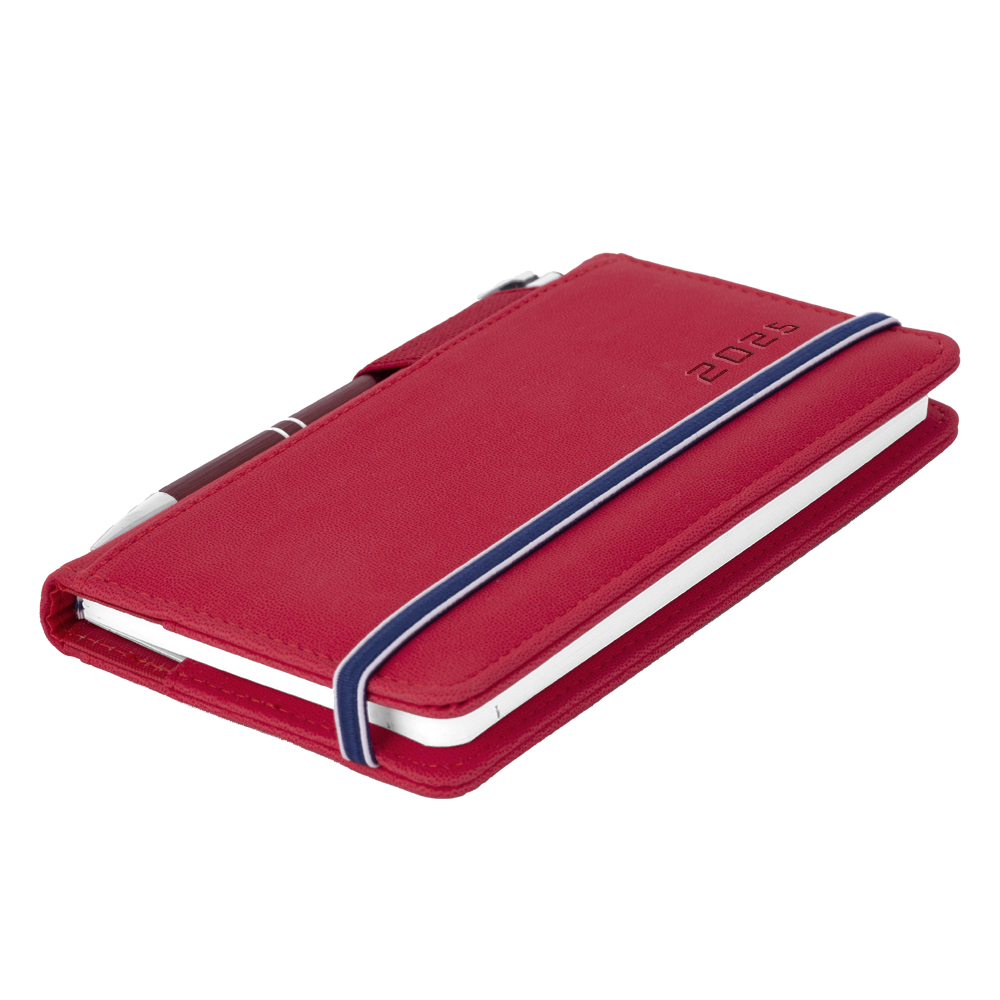 Diář AMOS týdenní kapesní 2025 český - červená/modrá gumička