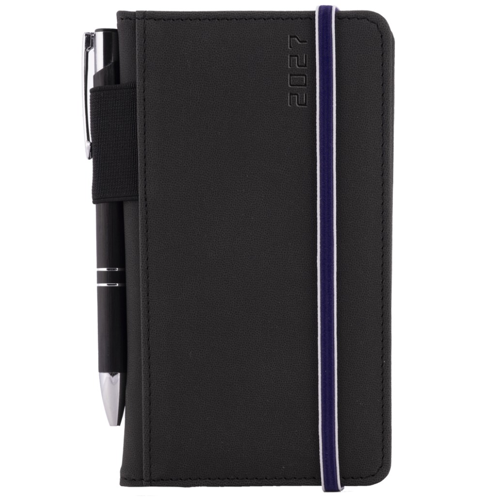 Diář AMOS týdenní kapesní 2027 polský - černá/modrá gumička