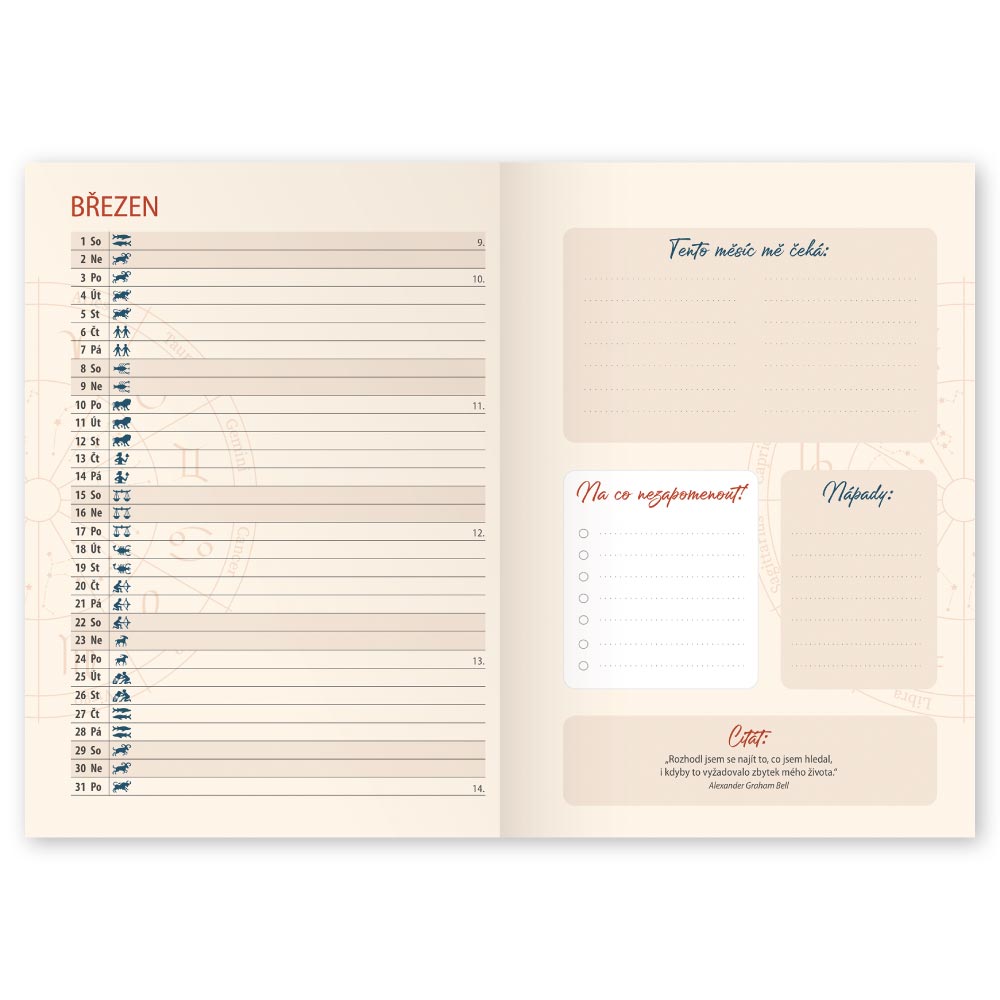 Součástí je gumička na zavírání, záložka, tři aršíky kreativních samolepek.