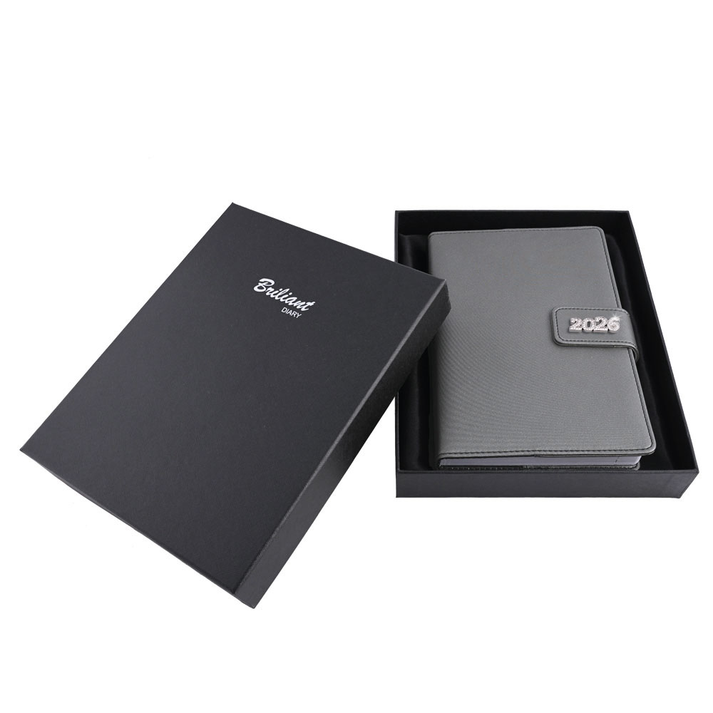 Diář je balen v dárkové krabičce vystalné saténem.