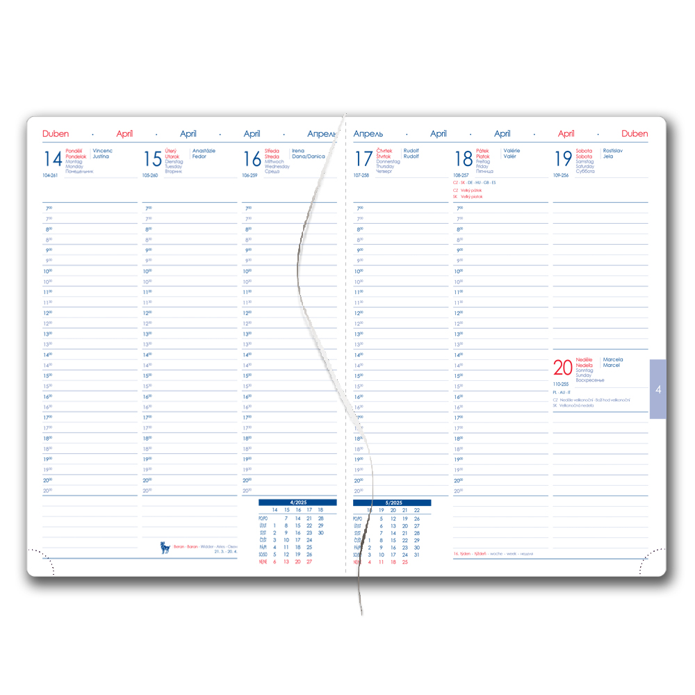 plánovací kalendář 2025, roční plánovací kalendář CZ a SK,
