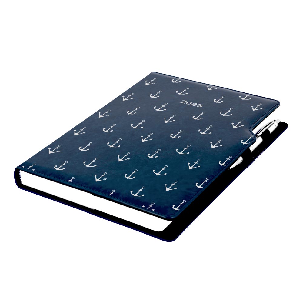 Diář DESIGN denní A4 2025 - modrý - námořník - kotvy