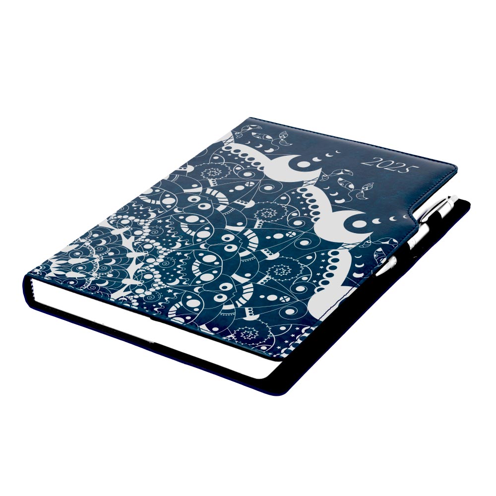 Diář DESIGN denní A4 2025 - modrý - ornament