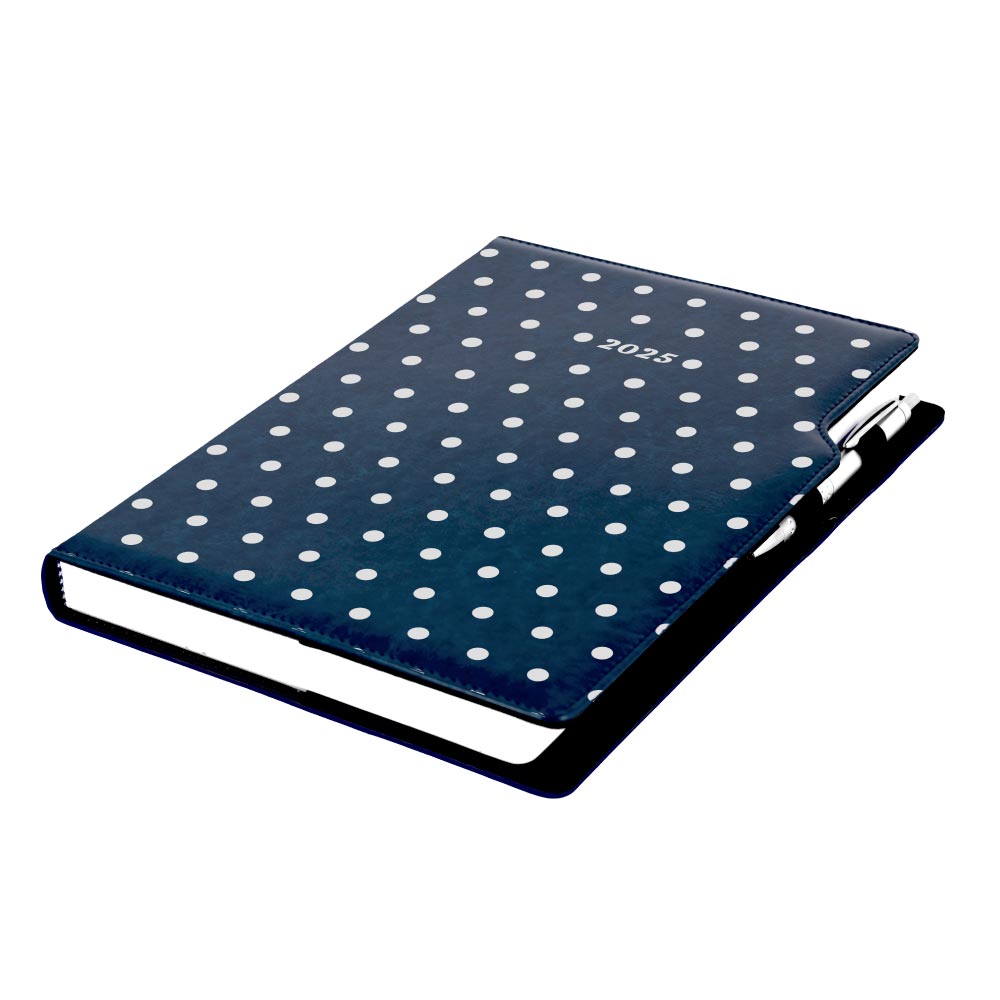 Diář DESIGN denní A4 2025 - modrý - puntíky