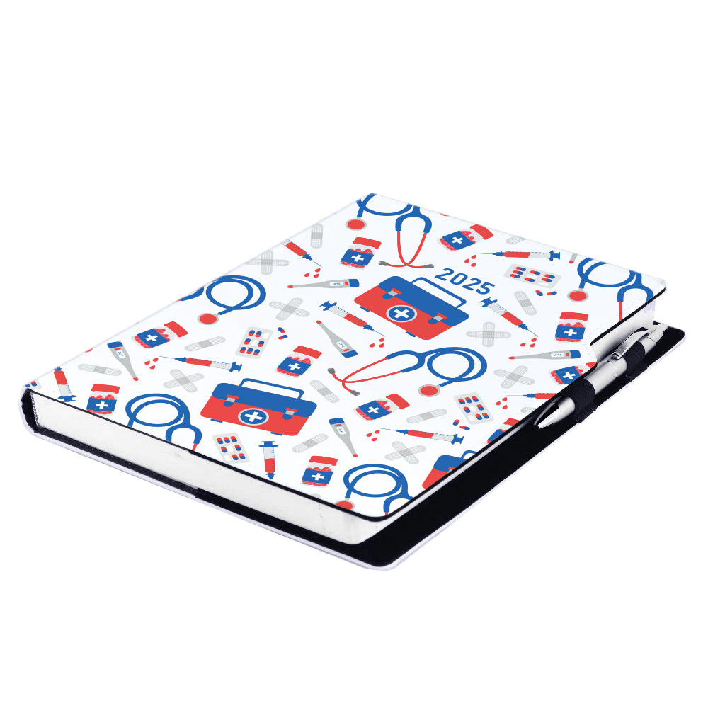 Diář obsahuje: kulaté odtrhávací rožky, bílou záložku a propisku