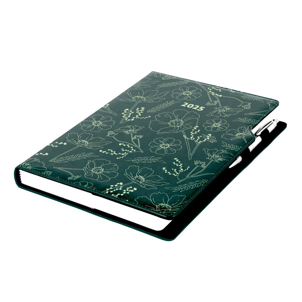 Diář DESIGN denní A4 2025 polský - zelená - Květiny