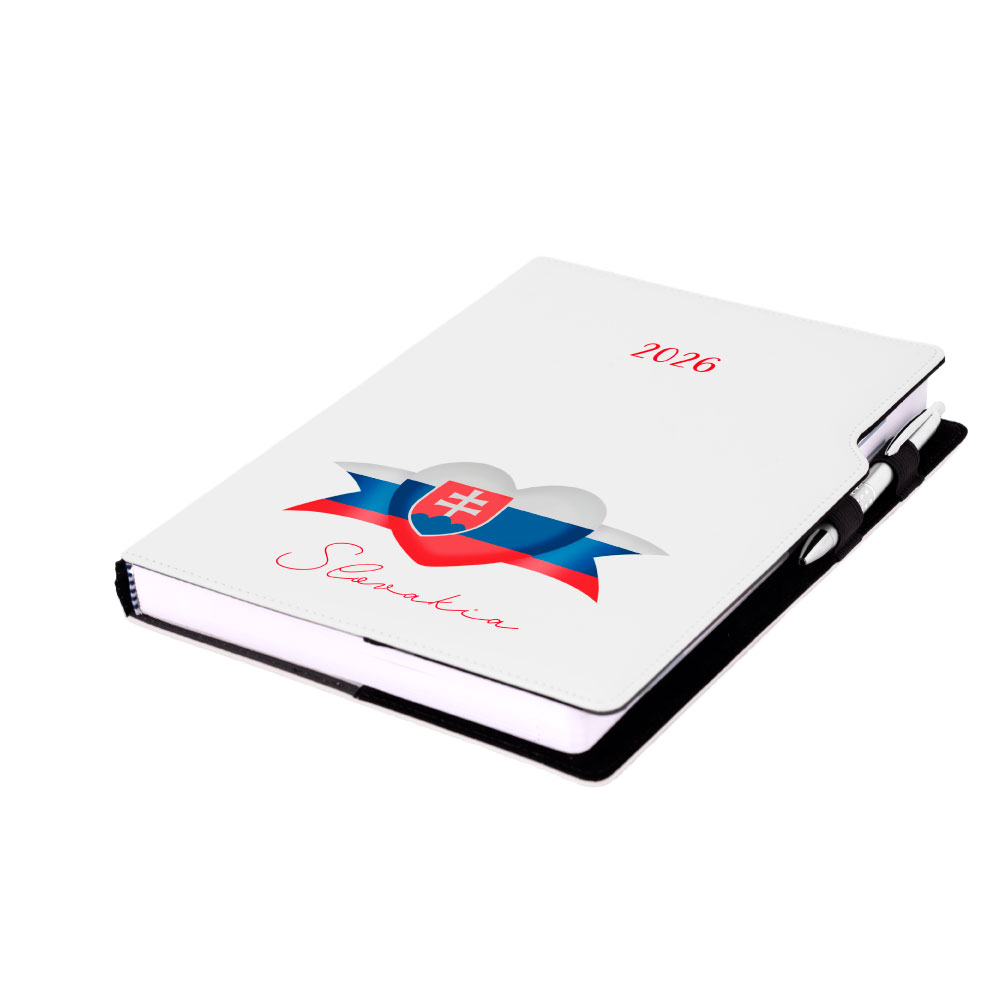Diář DESIGN denní A4 2026 - bílá - Slovensko - vlajka