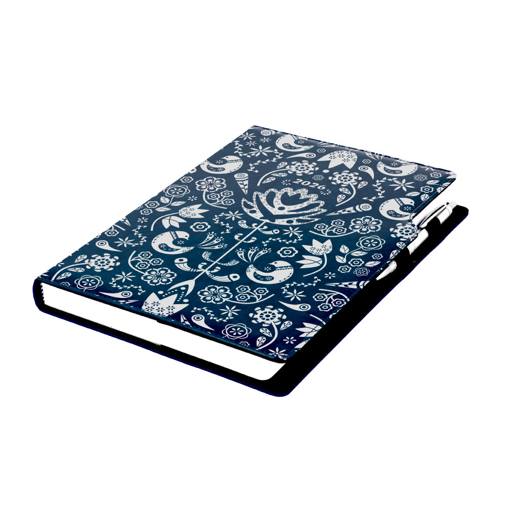 Diář DESIGN denní A4 2026 - modrá - Folk