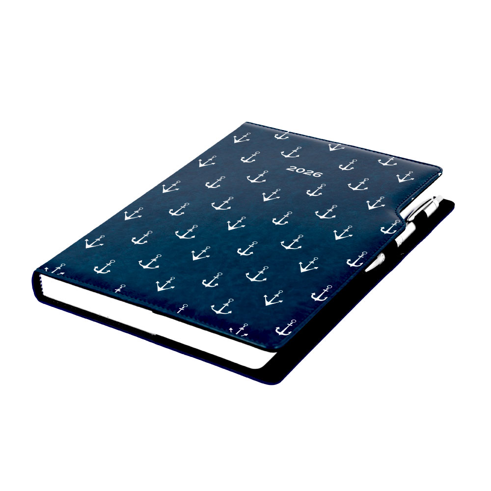 Diář DESIGN denní A4 2026 - modrý - námořník - kotvy