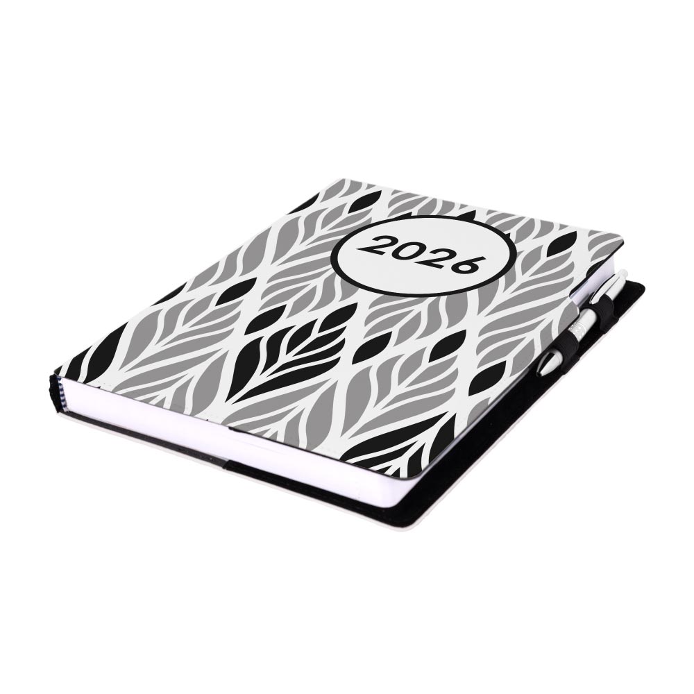 Diář obsahuje: kulaté odtrhávací rožky, bílou záložku a propisku