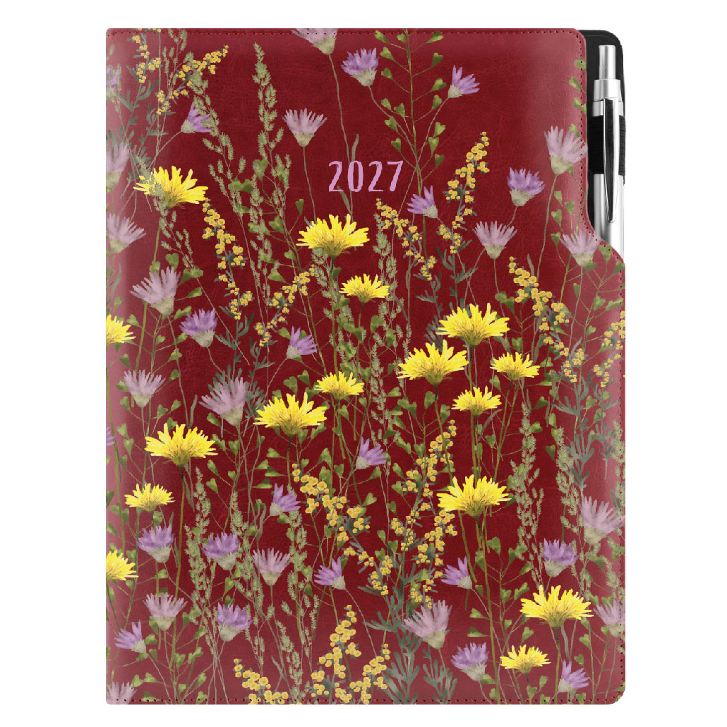 Diář DESIGN denní A4 2027 - bordó - Louka