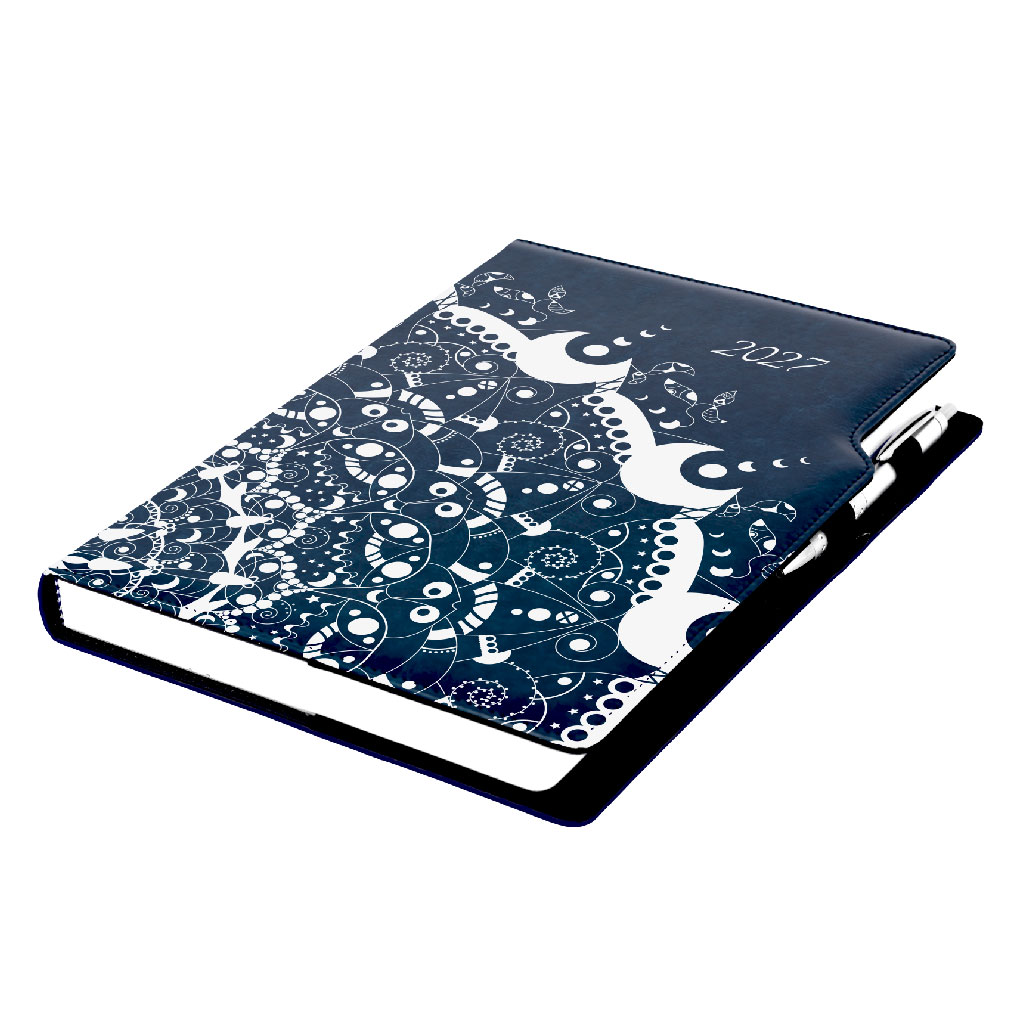 Diář DESIGN denní A4 2027 - modrá - Ornament