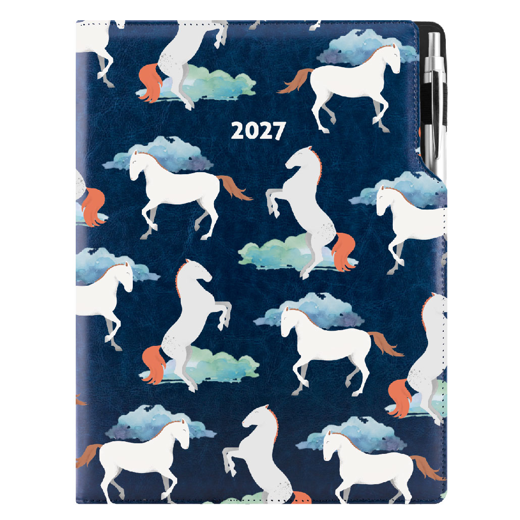Diář DESIGN denní A4 2027 - modrý - koně