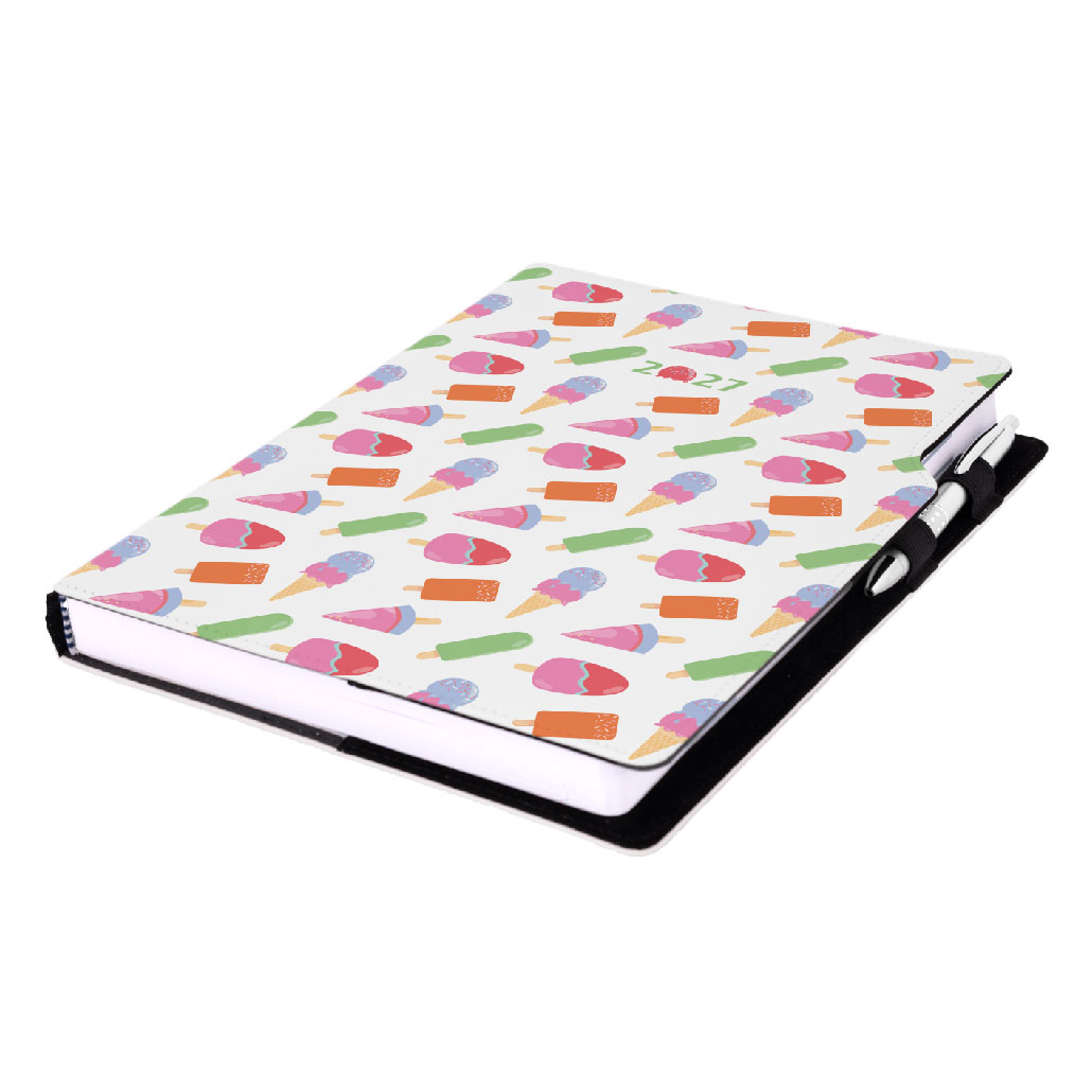 Diář obsahuje: kulaté odtrhávací rožky, bílou záložku a propisku