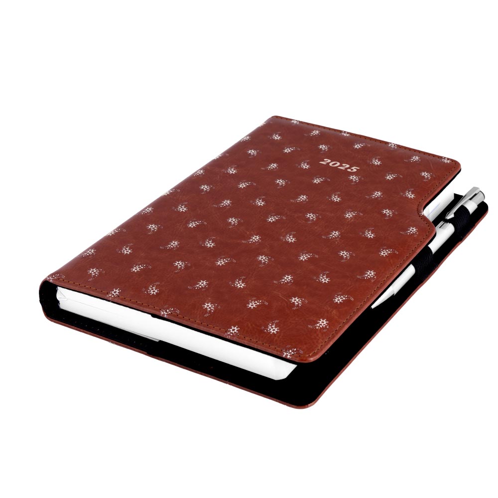 Diář DESIGN denní A5 2025 český - hnědá - Bílý květ