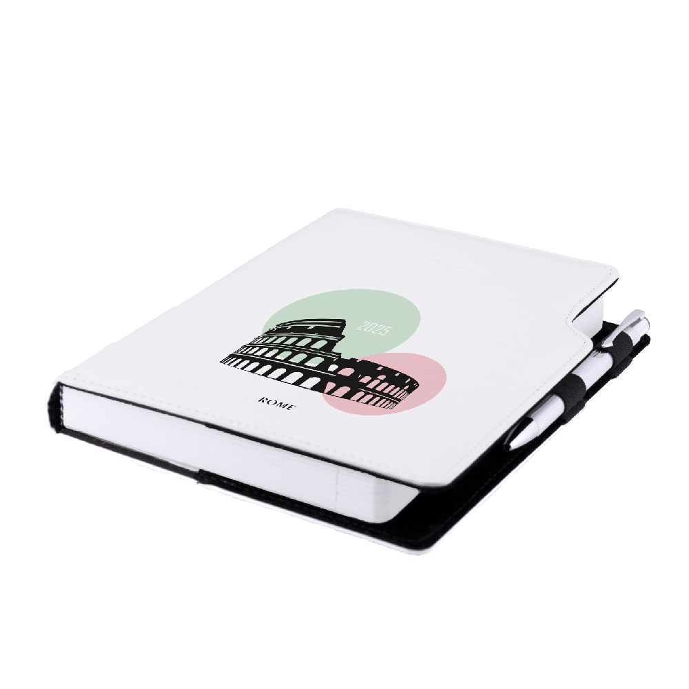 Diář obsahuje: kulaté odtrhávací rožky, bílou záložku a propisku