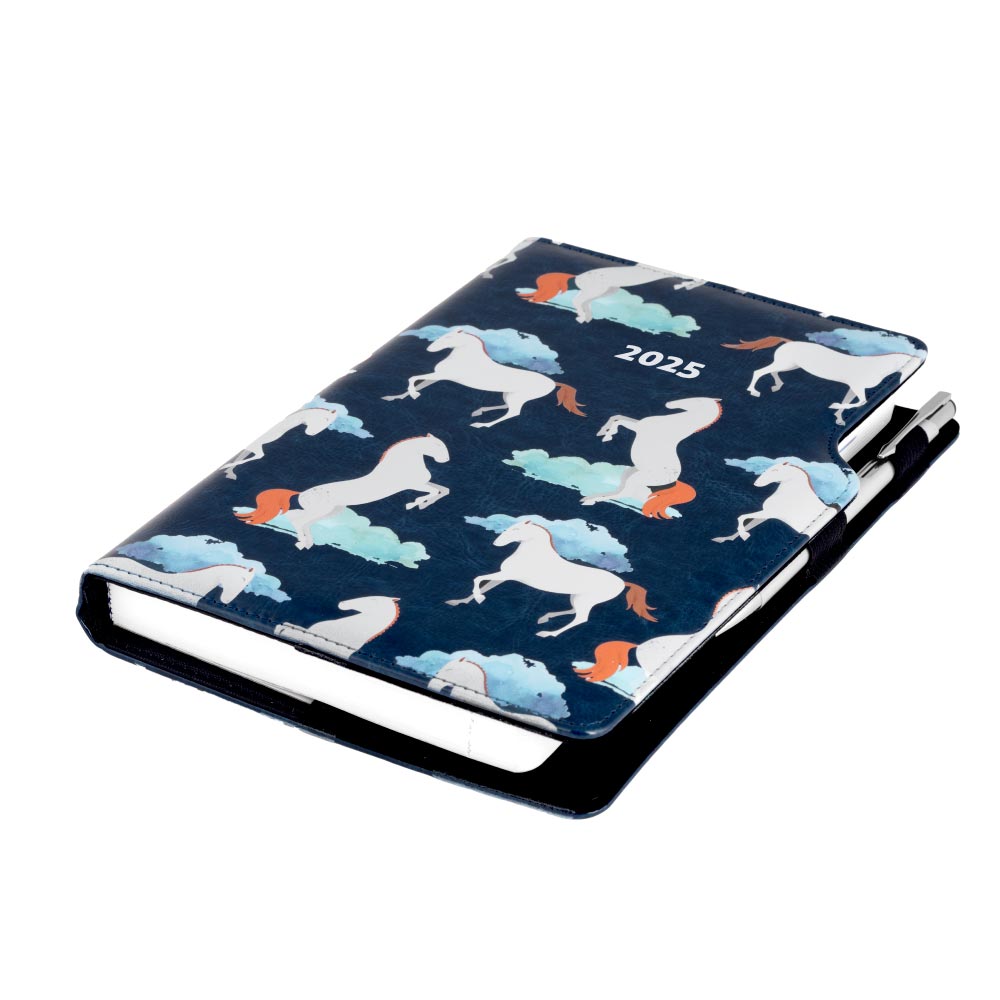Diář DESIGN denní A5 2025 slovenský - modrá - koně