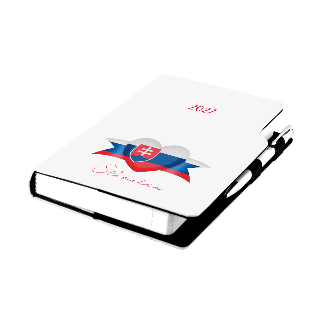 Diář DESIGN denní A5 2027 - bílá - Slovensko - vlajka