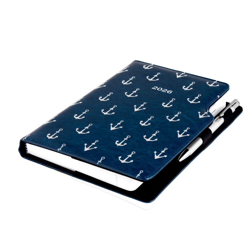 Diář DESIGN denní B6 2026 - modrý - námořník - kotvy