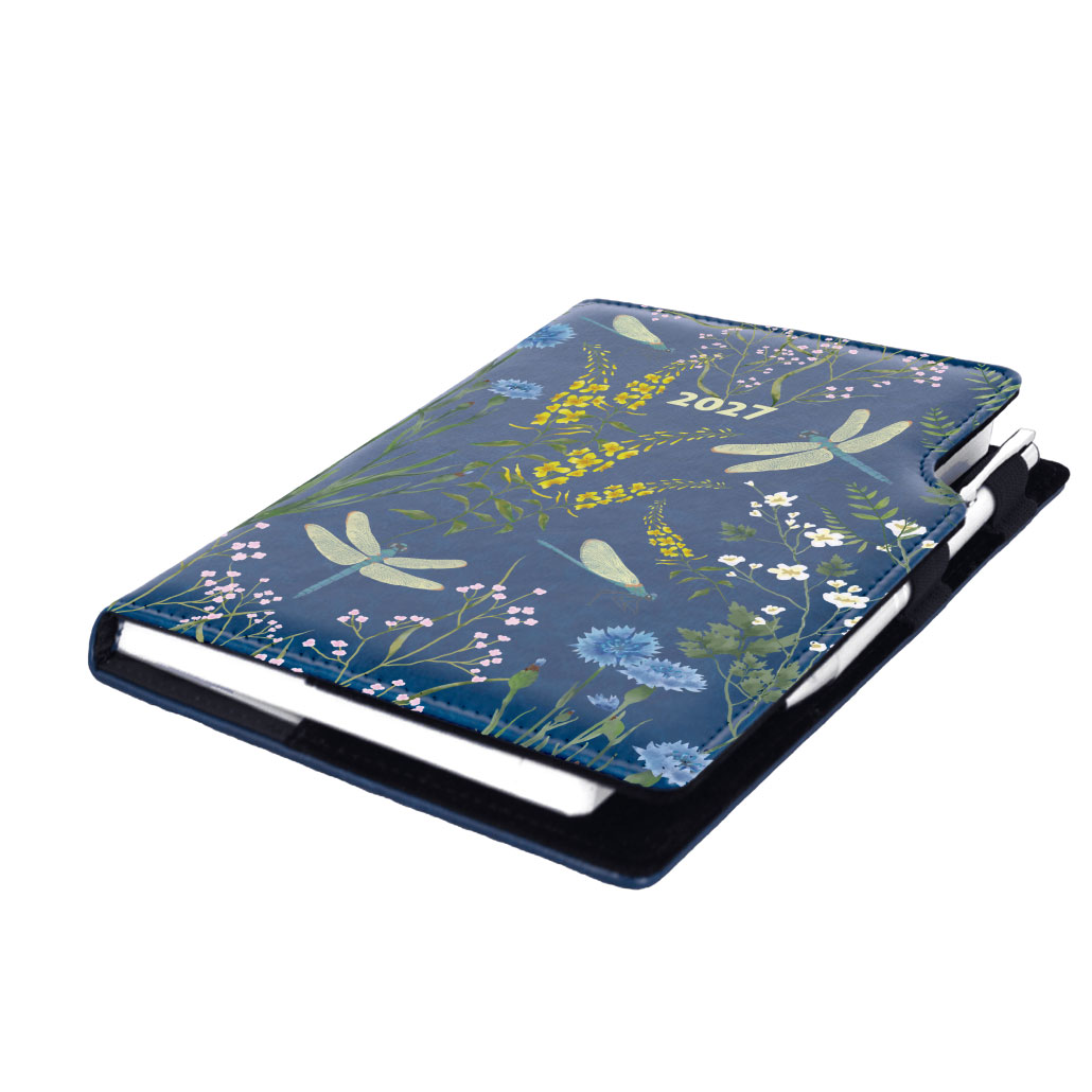 Diář DESIGN denní B6 2027 - modrý - vážky