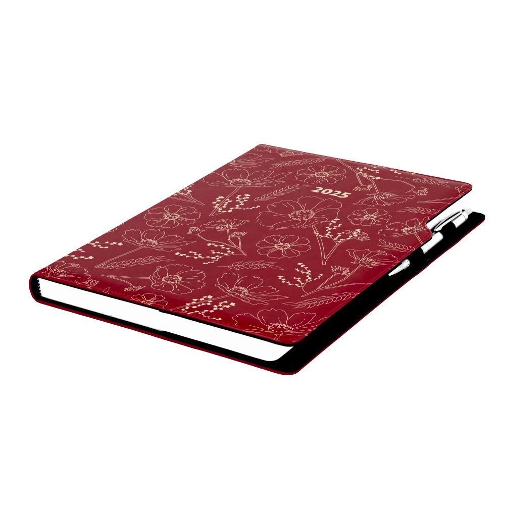 Diář DESIGN týdenní A4 2025 - bordó - květiny