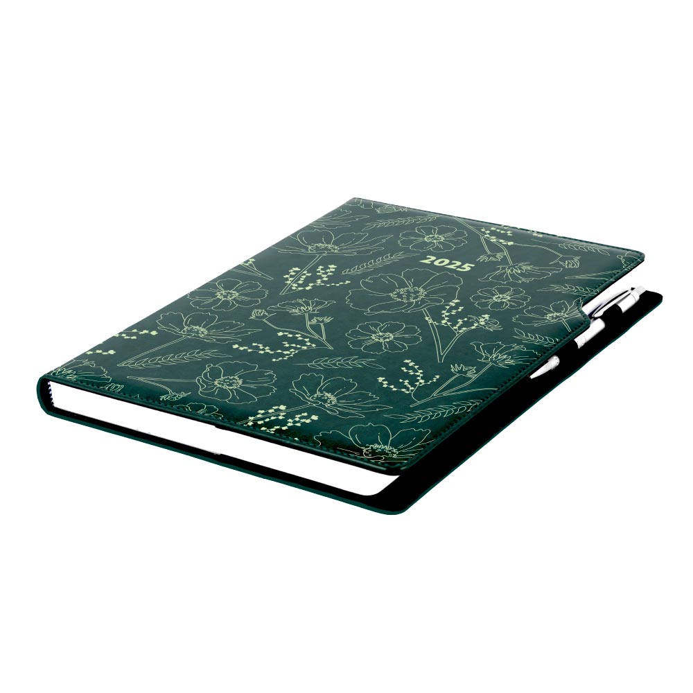 Diář DESIGN týdenní A4 2025 - zelená - Květiny