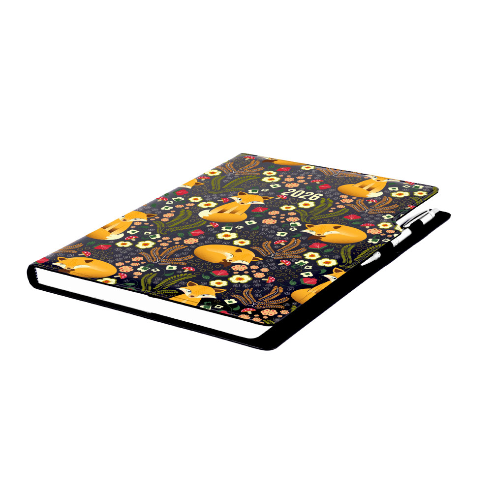 Diář DESIGN týdenní A4 2026 - černý - Liška