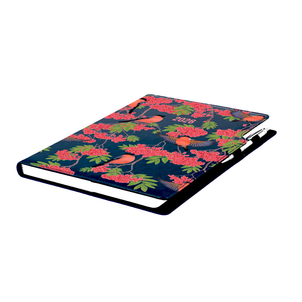 Diář obsahuje: kulaté odtrhávací rožky, bílou záložku a propisku