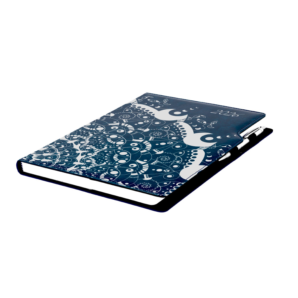 Diář DESIGN týdenní A4 2026 - modrý - ornament