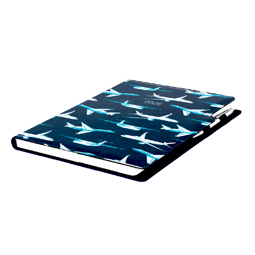 Diář DESIGN týdenní A4 2026 polský - modrá - Letadla