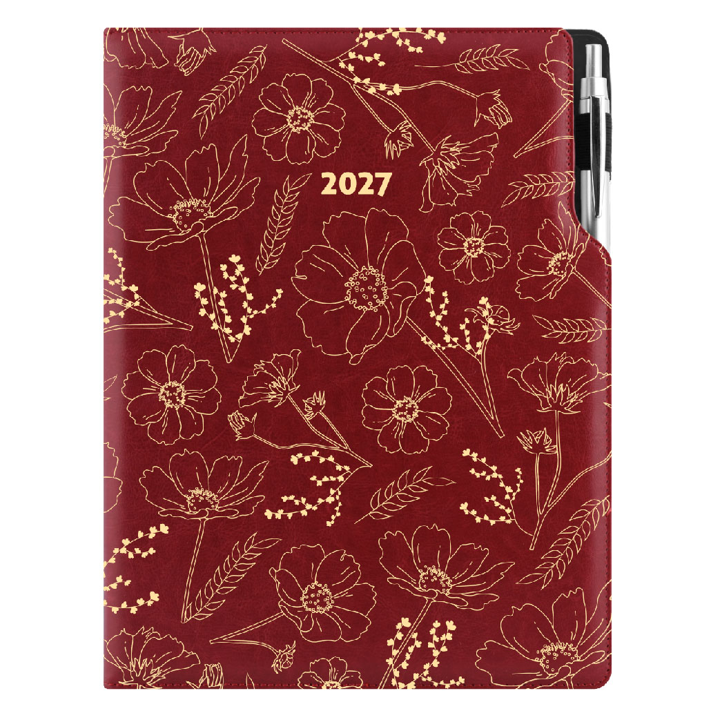 Diář DESIGN týdenní A4 2027 - bordó - květiny