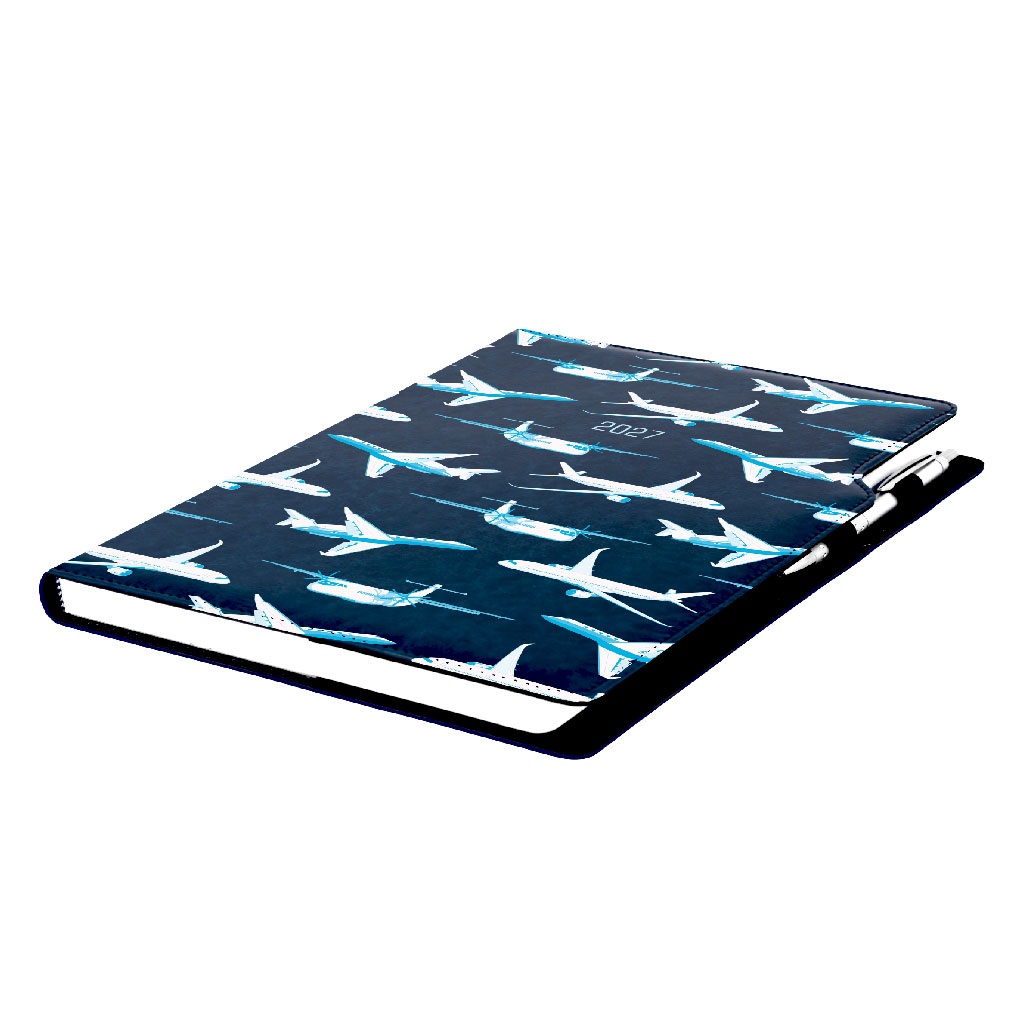 Diář DESIGN týdenní A4 2027 český - modrá - Letadla