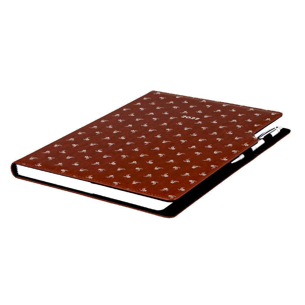 Diář DESIGN tydenní A4 2027 - hnědá - Bílý květ