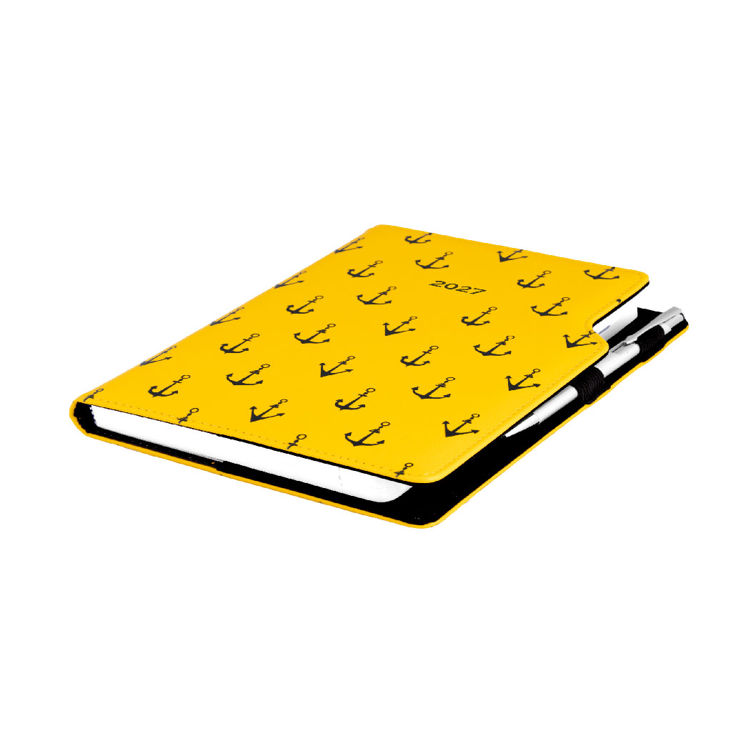 Diář DESIGN tydenní A4 2027 - žlutá - Námořník - kotvy