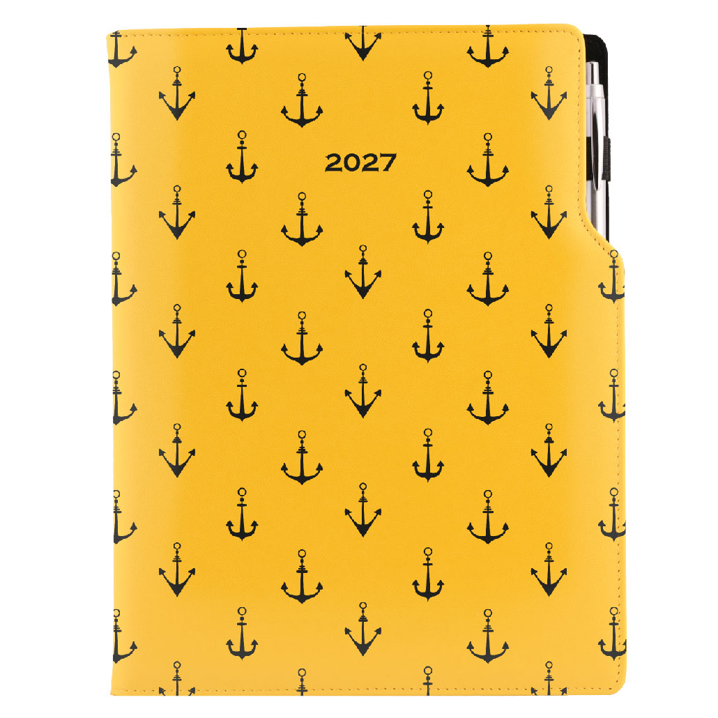 Diář DESIGN tydenní A4 2027 - žlutá - námořník - kotvy