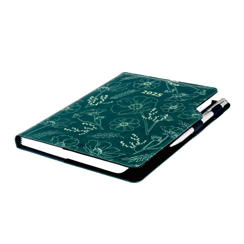 Diář DESIGN týdenní A5 2025 český - zelená - Květiny