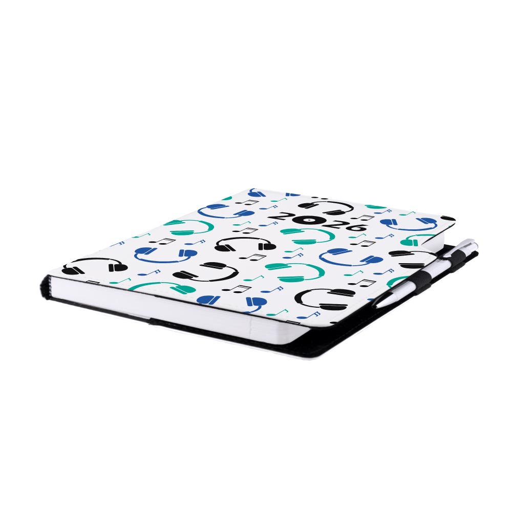Diář obsahuje: kulaté odtrhávací rožky, bílou záložku a propisku