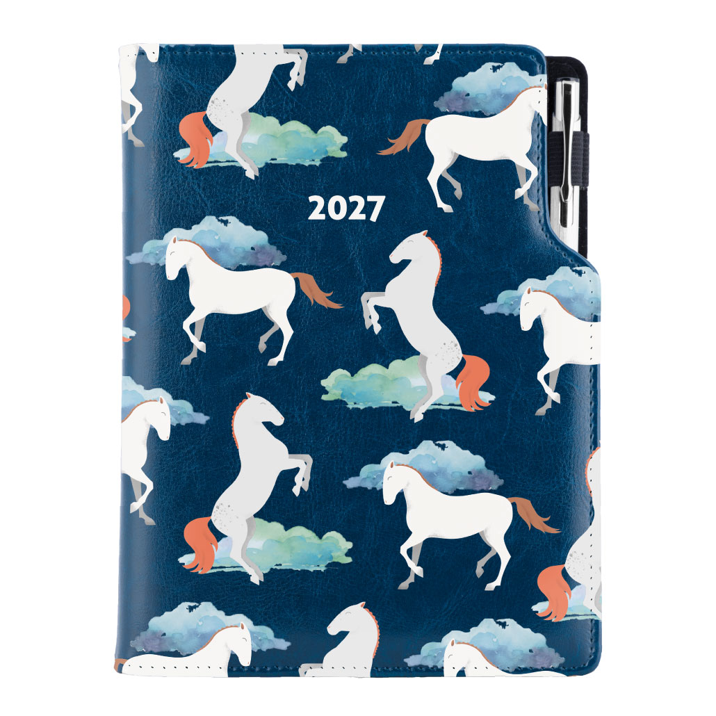 Diář DESIGN týdenní A5 2027 - modrý - koně
