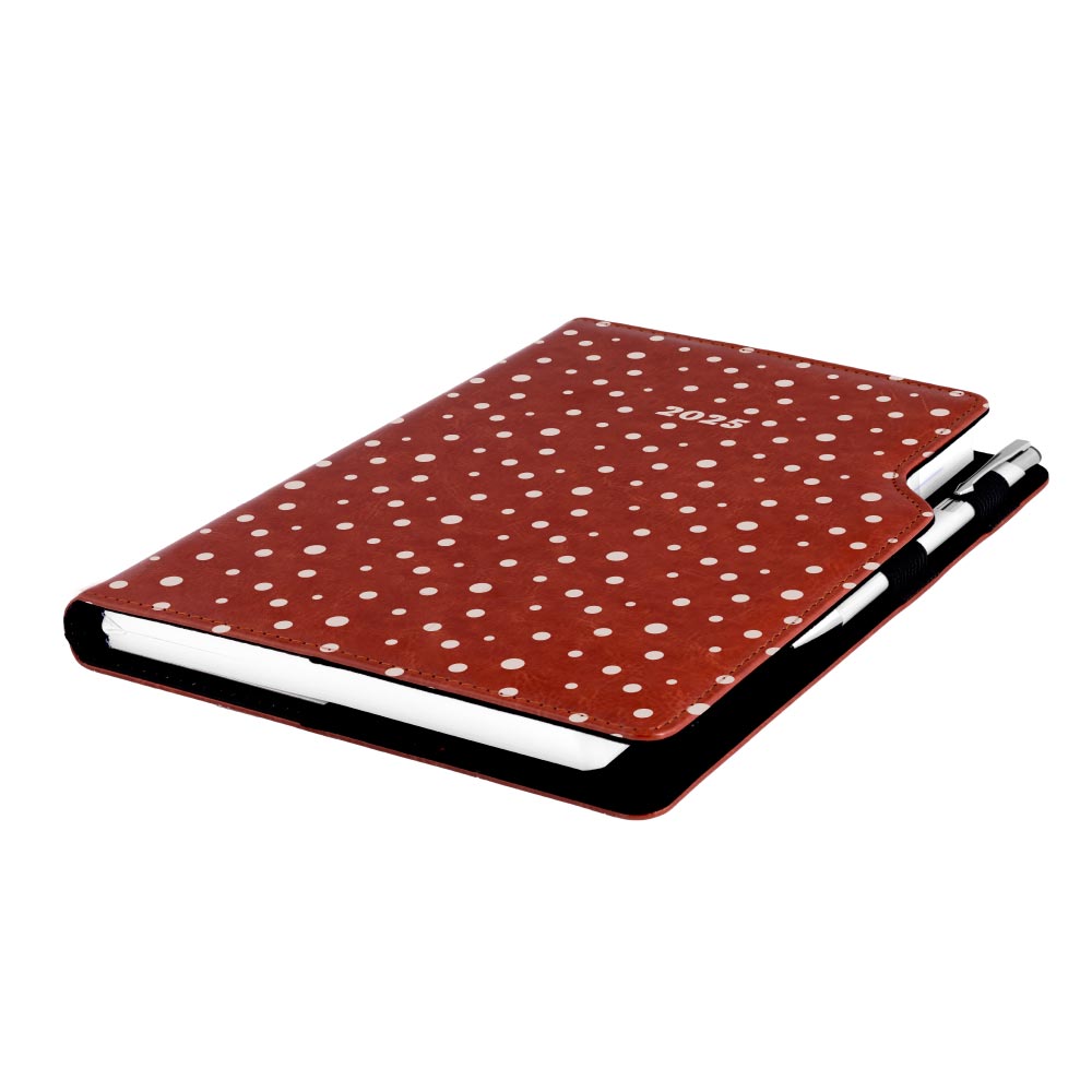 Diář DESIGN týdenní B5 2025 - hnědá - puntíky